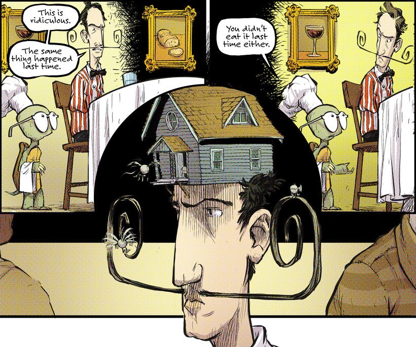 I had actually conceived these characters within the humorous gag strip style context, but this is the first Lestrygonians full page gag comic that I’ve done in probably 25 years.